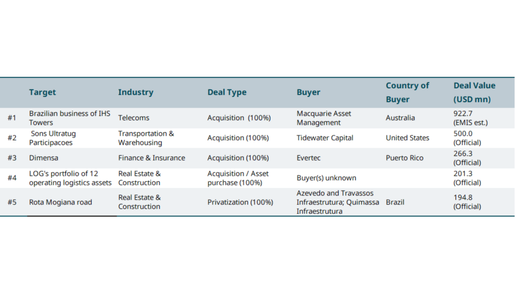 Home>News & Insights>Publications>IHS Towers Exits Brazil in Near USD 1bn Sale to MacquarieIHS Towers Exits Brazil in Near USD 1bn Sale to Macquarie EMIS Insights Publications Velizar Velikov 24.04.2026 under a minute read UK-based IHS Towers has agreed to sell its Latin American tower business, including its Brazilian operations, to Macquarie Asset Management for an enterprise value of approximately USD 952mn. The deal includes 8,500 sites in Brazil and 270 sites in Colombia., providing Macquarie with significant exposure to the country’s growing mobile infrastructure market, driven by 5G rollout and network densification. For IHS, the divestment supports its strategy to simplify its portfolio and refocus on core markets, while Macquarie gains stable, long-term contracted revenue assets. Tags BrazilEmerging MarketsM&A & InvestmentRecent Posts German economy has defied the Gulf crisis so far CEIC 24.04.2026 Publications The global inflation wave stemming from the Persian Gulf crisis has reached Germany, but there has been little effect on economic activity so far. CEIC's high-frequency indicators are monitoring Europe's largest economy in near-real time; they suggest that March economic figures (and, hence, first-quarter data yet to be reported, such as industrial production and GDP) stayed surprisingly resilient. Read More Jet fuel crunch threatens summer travel as airlines cut flights CEIC 24.04.2026 Publications The shortage of refined products stemming from the Middle East crisis is particularly acute when it comes to jet fuel. Read More Some optimism eludes the blockade in mid-April EPFR 24.04.2026 Insights The market euphoria that followed the announcement of a ceasefire between the US and Iran on April 7 soon ran Read More Sorry, no articles match the current filters. Sorry, no articles match the current search query.